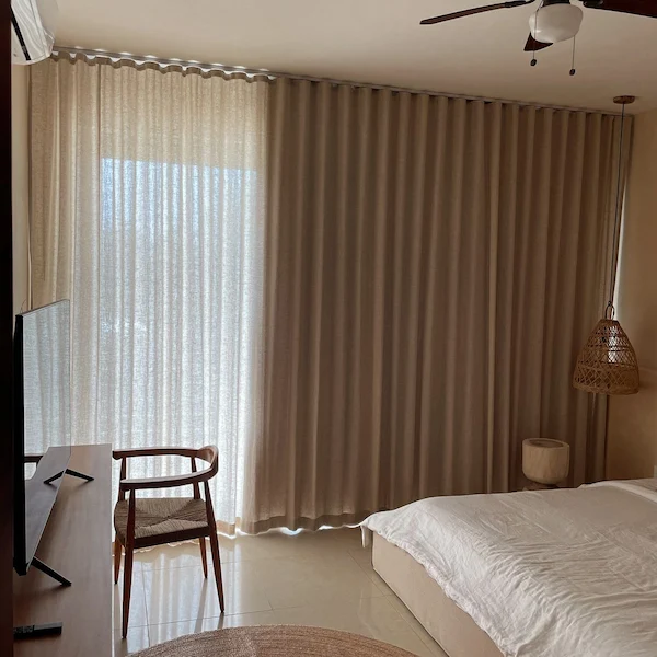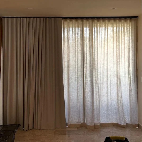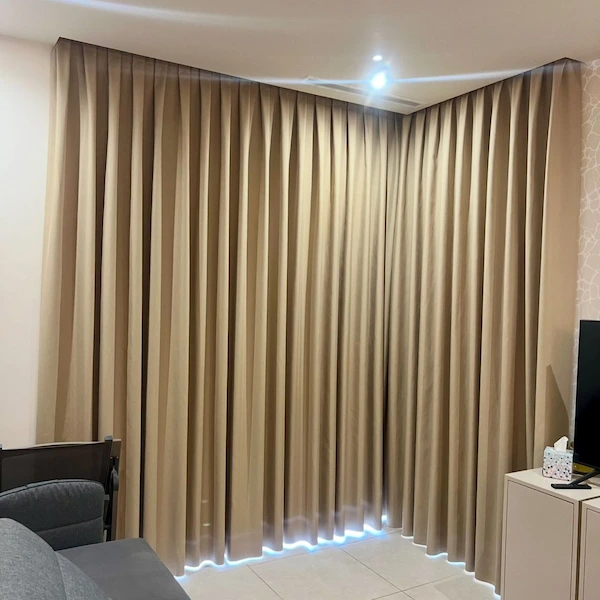 Curtains Tailoring has gradually established a good reputation in the provision of well-stitched beige curtains in Dubai. We pay keen attention to the correct pleat shape to ensure that the curtains remain graceful and efficient. We only utilize fabrics of good quality, no matter the type of curtains manufactured, such as beige linen curtains, velvet curtains choices, sheer overlay, etc.