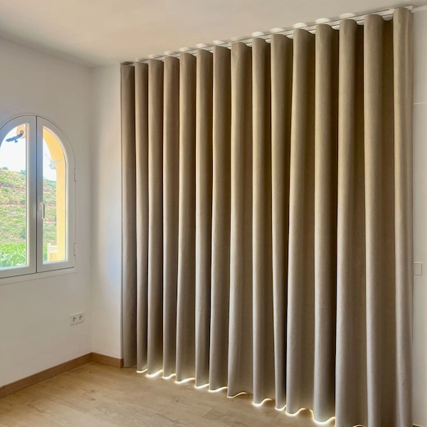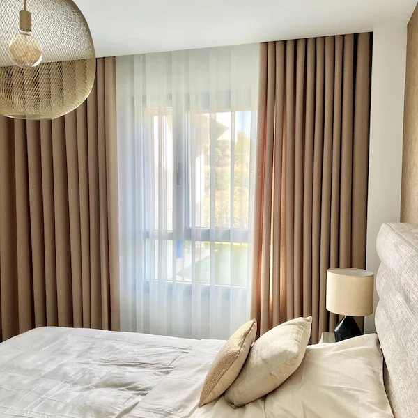 Light colours tend to make the environment more cozy than dark window curtains. We have beige-coloured curtains which permit the light of the day to enter the rooms in a gentle way, making the rooms look brighter and more relaxed. The effect is particularly effective in apartments where natural light is a significant factor in the overall atmosphere of the room.