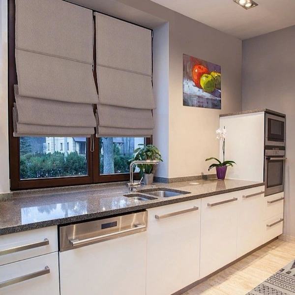 Our cordless roman blinds in Dubai offer a safe, minimal look, while electric roman shades give smooth operation for large windows. The fabric choices range from breathable cotton blends to dense blackout roman shades. Our durable roman shades for the kitchen come in washable fabric, while luxury roman shades for the bedroom focus more on privacy and light blocking.